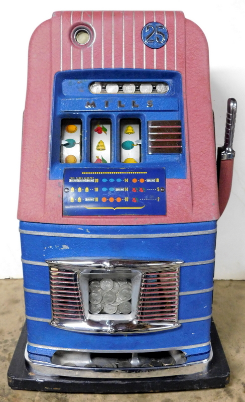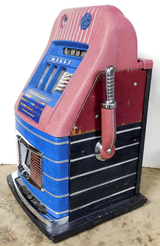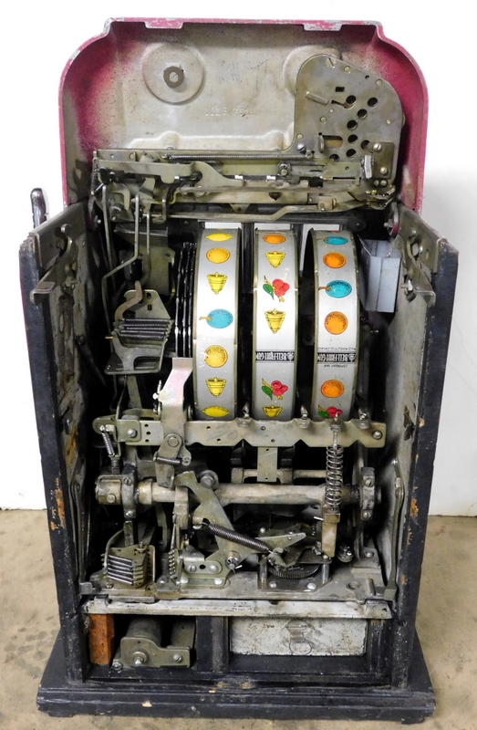 Mills 1946 Jewel Bell Hi-Top 25 cent, Original condition "not restored". Original award card, original reel strips, original back door, original cash box. Plays very easy.
